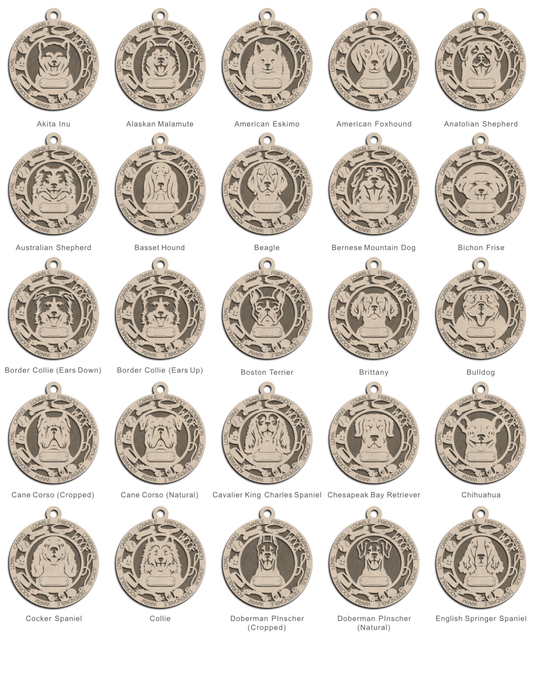 Dog Ornament with Icons - Over 130 breeds/variations to choose from